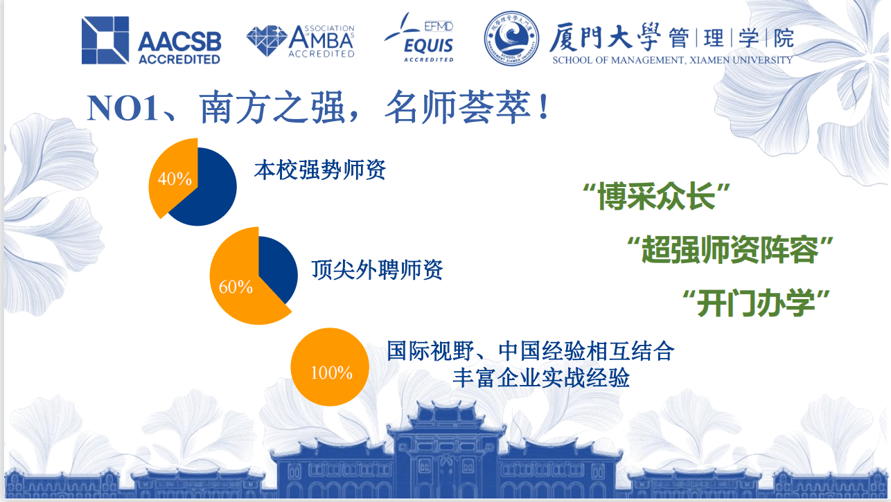 为什么选择厦门大学EMBA?南方之强,名师荟萃国际视野、中国经验相互结合,丰富企业实战经验。